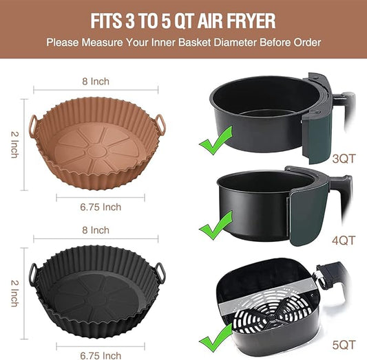 2 Pack Air Fryer Silicone Liners Pot for 3 to 5 QT, Air Fryer Silicone Basket Bowl, Replacement of Flammable Parchment Paper, Reusable Baking Tray Oven Accessories, Brown+Blk, (Top 8in, Bottom 6.75in)