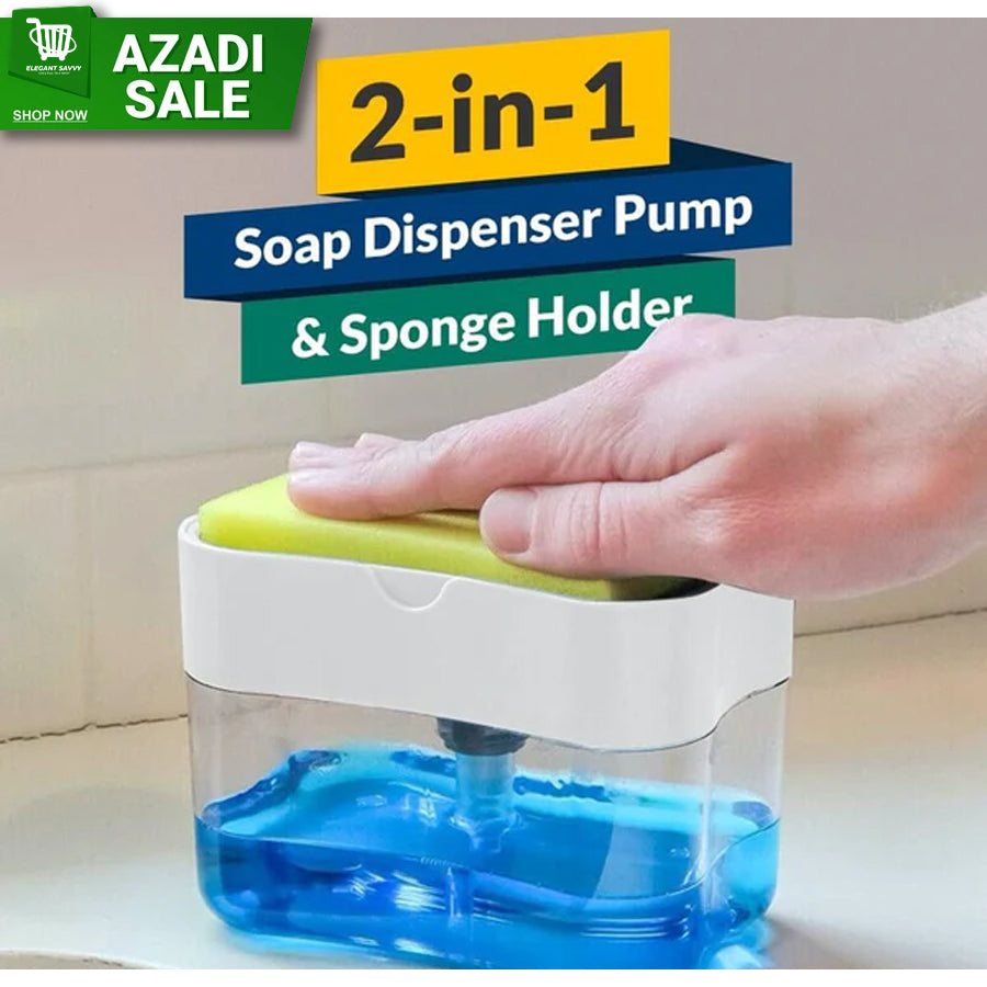 2 in 1 design: Soap dispenser and caddy, single-hand operation. Sink dispenser with attached caddy, you can use it to hold sponges, scrubbers, rags, and scouring pads in one convenient place while keeping water off of kitchen counters.