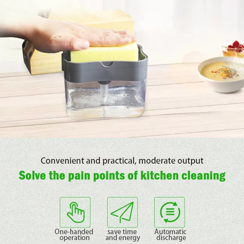 - Easy to use: Use the included sponge to press down on the pump, which dispenses the perfect amount of dish soap onto the sponge.