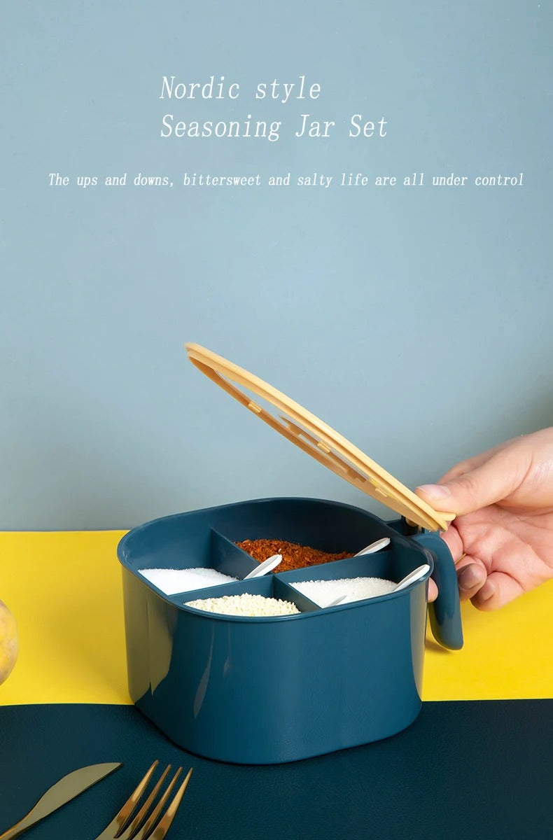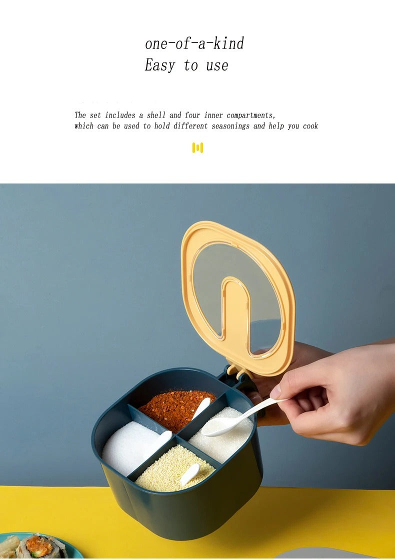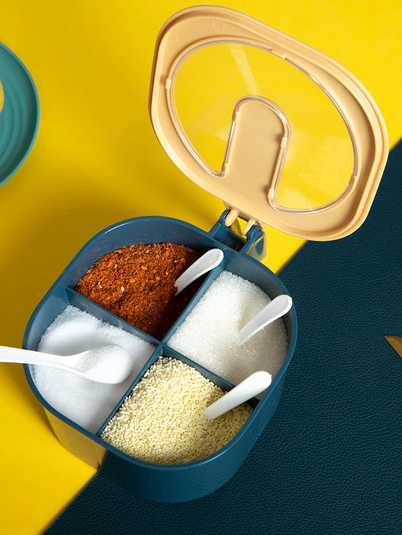 4 In 1 Partition Kitchen Seasoning Box Masala Box Set 4 Grid Portion Spice Jar Container Square Pepper Pot Box Spice Rack Kitchen Storage 4 Compartments Salt Box Achar Jar Dry Fruits Box Soup Spices.