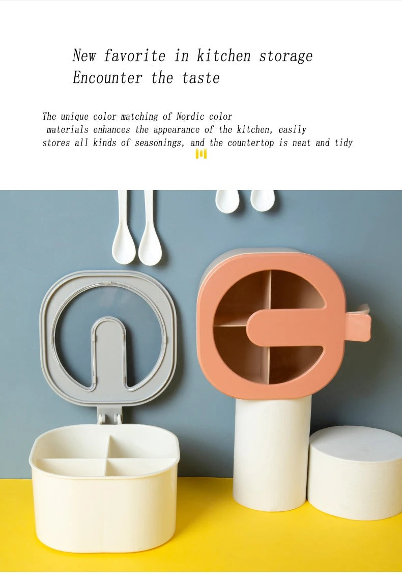 - Various seasonings are stored separately, with a partition in the middle to prevent mixing.