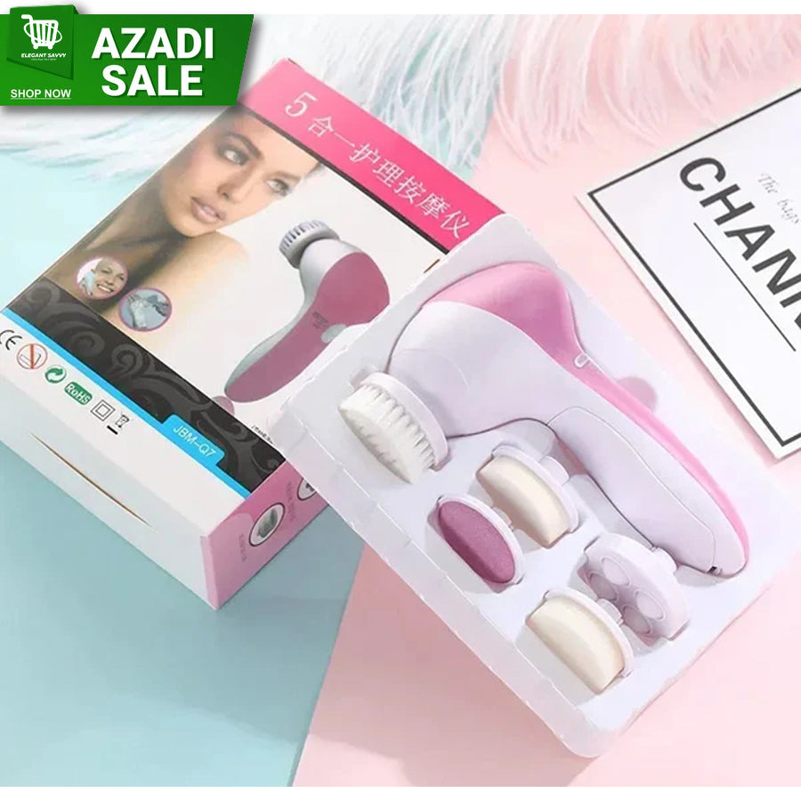 5 x Attachments: soft brush, Rolling massager, make-up sponge, Latex sponge-soft, Crude Polish accessory.
