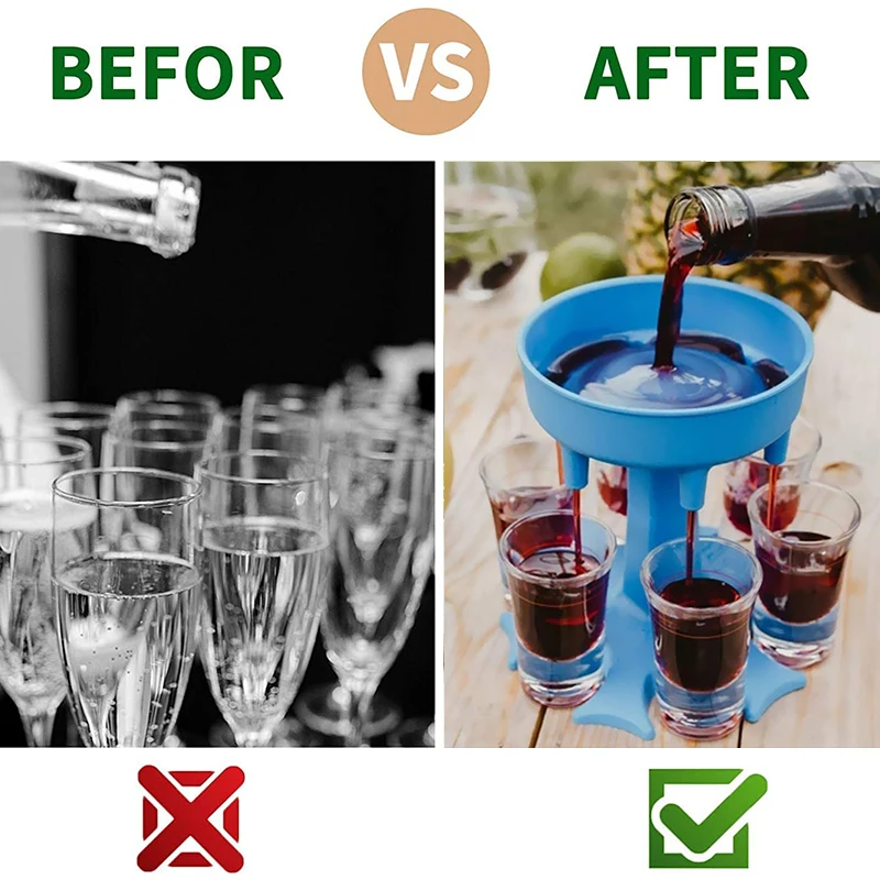 - Holds 6 glasses: The ingeniously-designed carrier holds 6 glasses which will be filled once you pour on the upper base. There are holes for each glass through which falls into it.