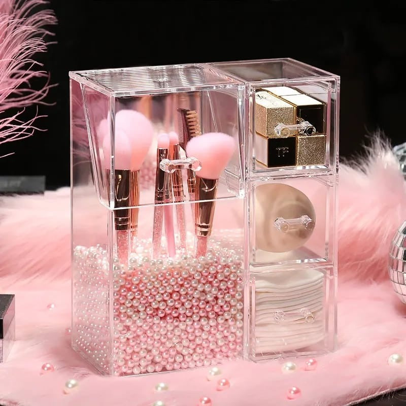 An acrylic brush holder with a drawer is a practical and stylish storage solution for brushes and accessories. Made from durable and transparent acrylic, it offers compartments for organizing brushes of various sizes, while the drawer provides extra space for small items. With its easy-to-clean design and elegant appearance, it is an ideal addition to art studios, beauty salons, or personal makeup collections. Keep your tools organized and easily accessible with this functional brush holder.