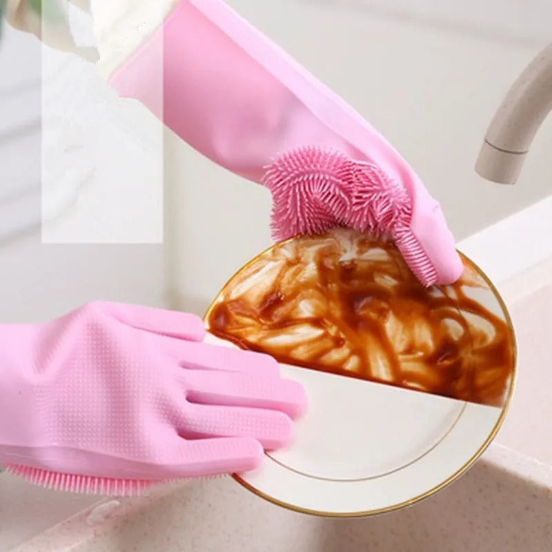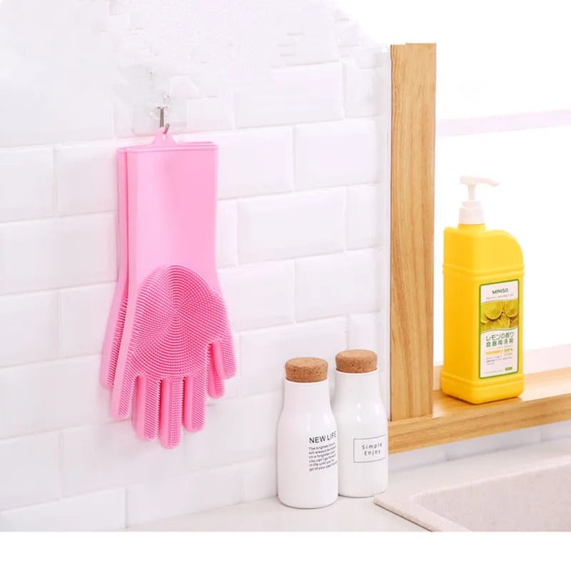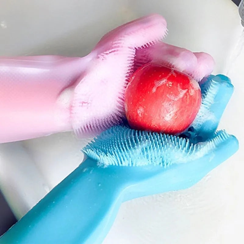 Multipurpose Magic Reusable Silicone Gloves with Wash Scrubber, Heat Resistant, for Cleaning, Household, Dish Washing, Washing the Car