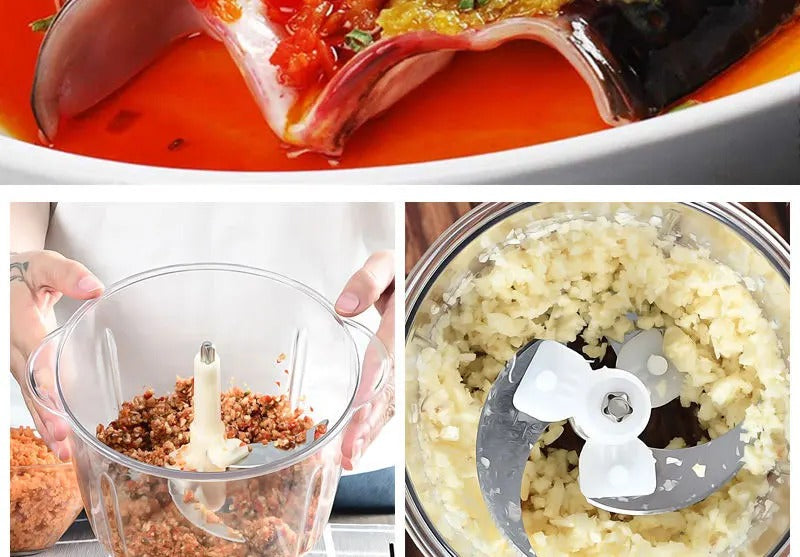 This electric food chopper is equipped with a powerful motor. Small food processing machines help you eat meat, fruits, vegetables, fruits, nuts. Electric meat slicers can help you cut through ice.