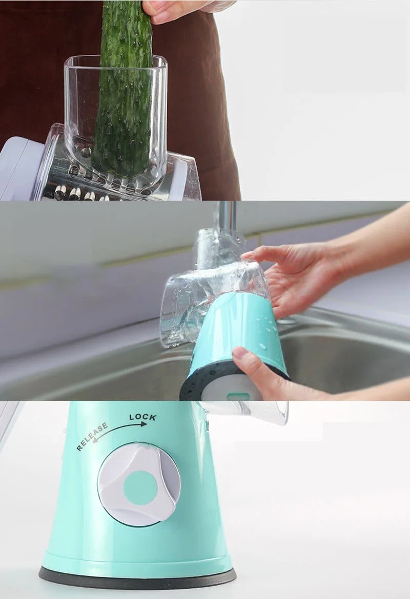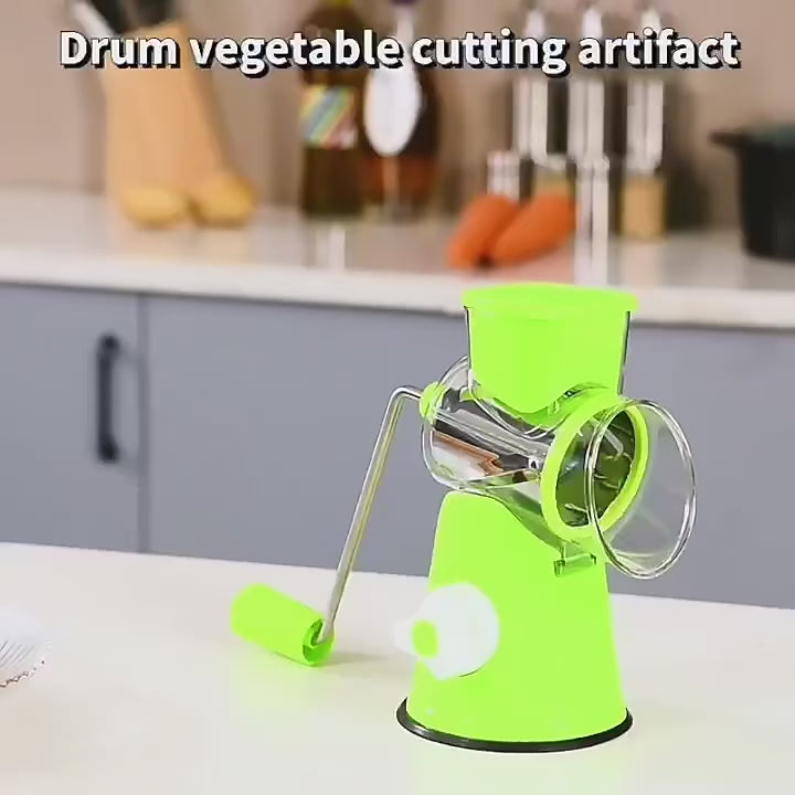 3 in 1 Rotary Vegetables Mandoline/Cutter - Manual Tabletop Drum Cutter