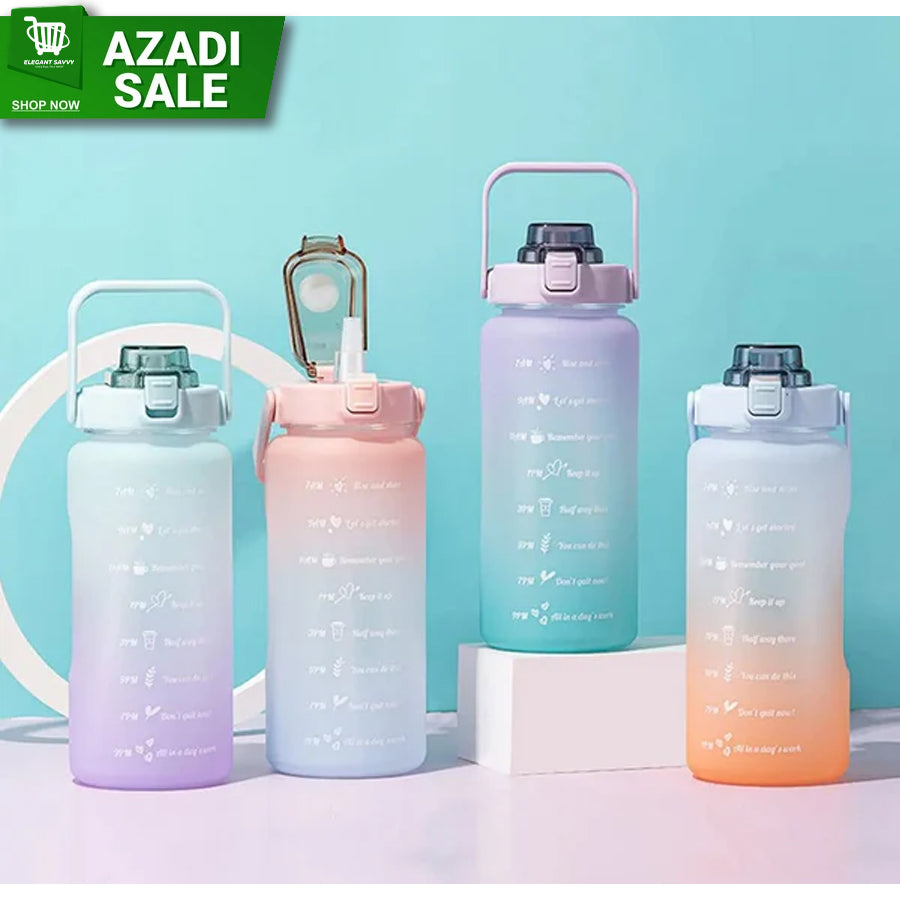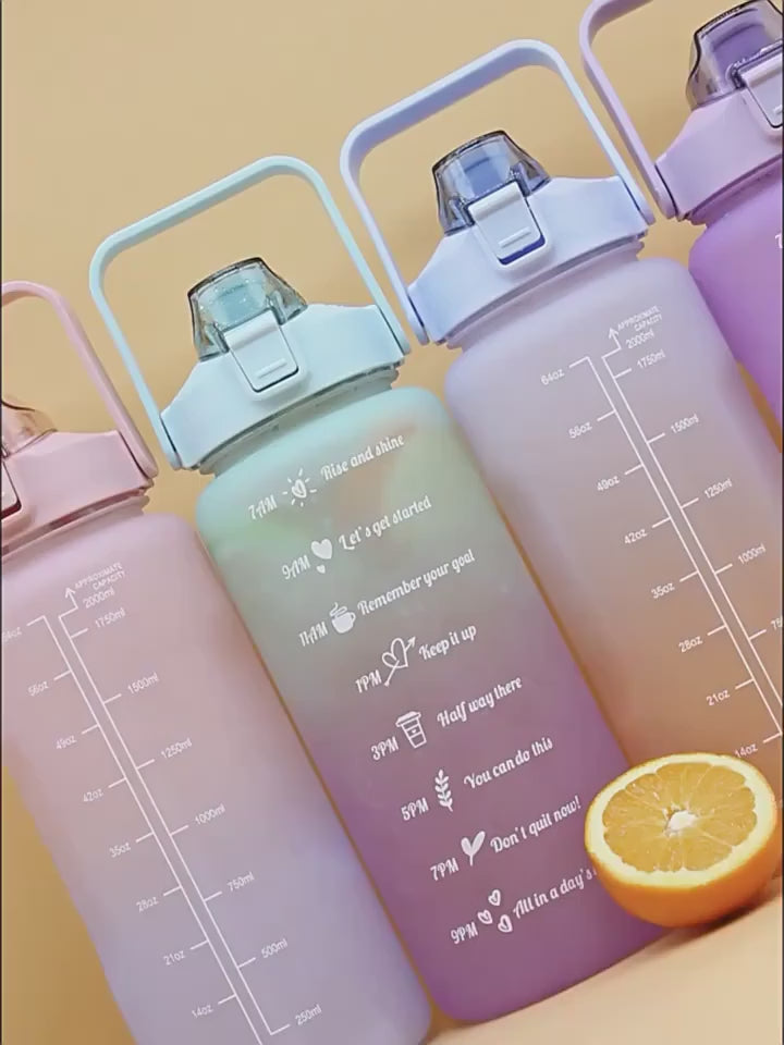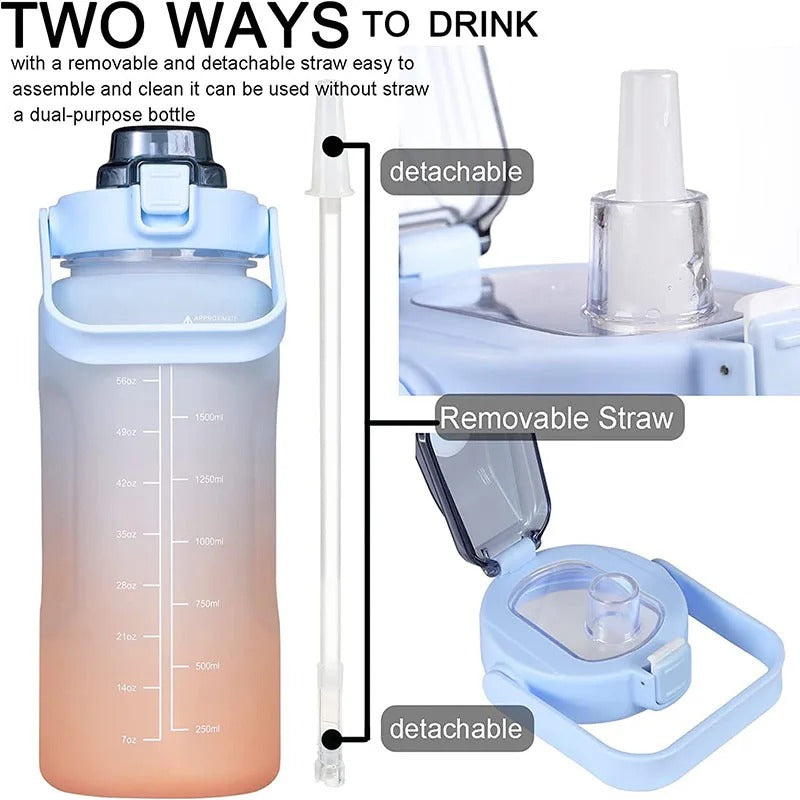 2000ml Motivational Sports Water Bottle With Straw and time marker
