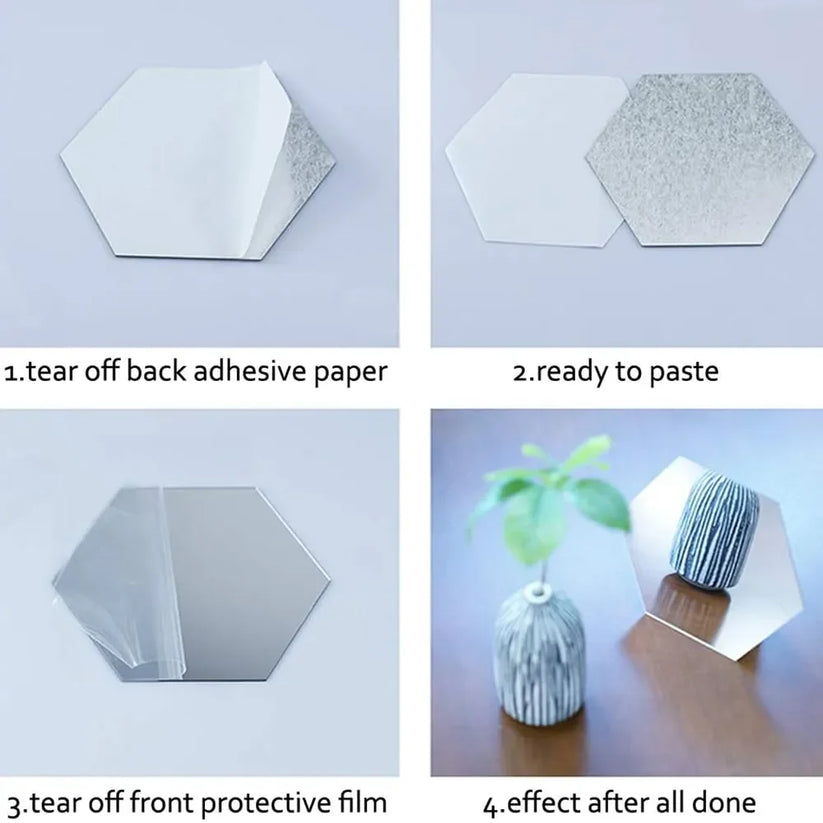 - Hexagon Elegance: Embrace contemporary design with the chic hexagon shape. Arrange these mirrors in endless patterns to create a customized and visually stunning focal point on your wall.