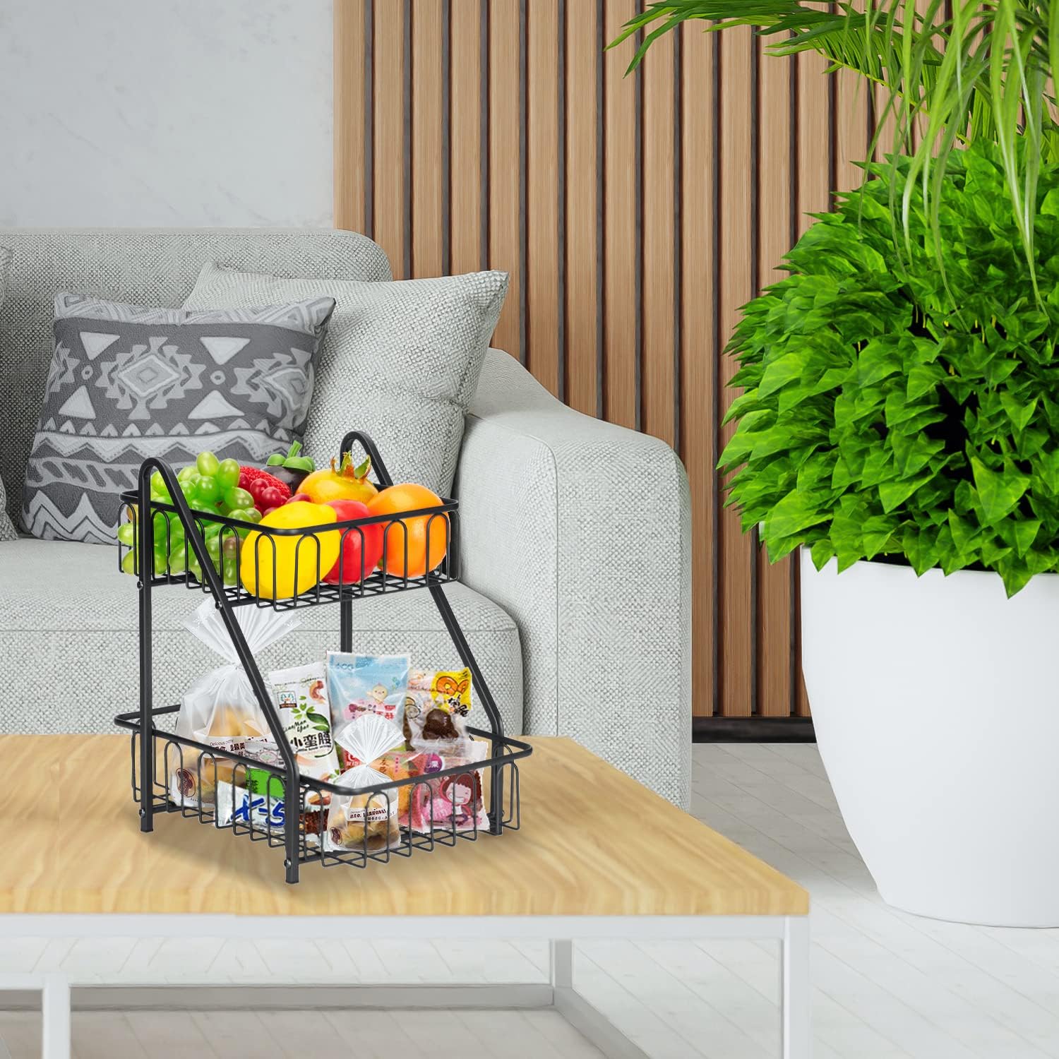 The innovative double-tiered design maximizes storage efficiency without compromising aesthetics, making it a versatile and visually appealing addition to your countertop or dining table. Assemble effortlessly and enjoy long-lasting durability—this basket effortlessly combines convenience and modern design, ensuring your kitchen is both clutter-free and sophisticated