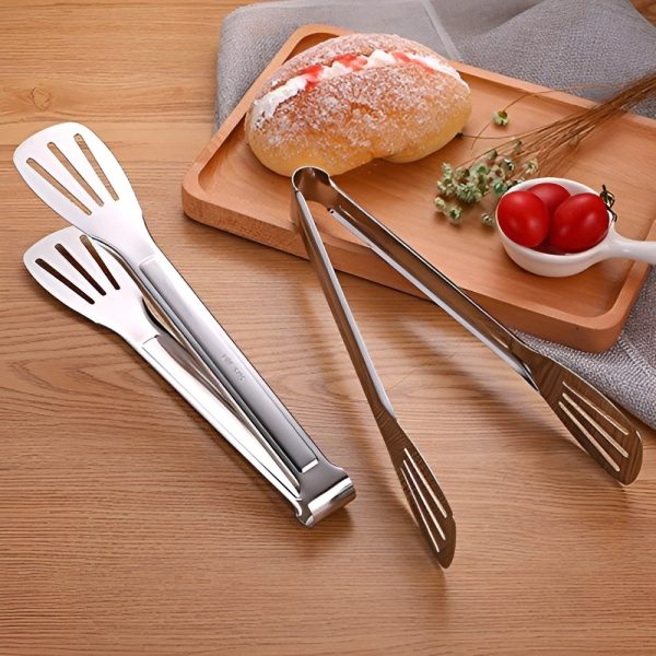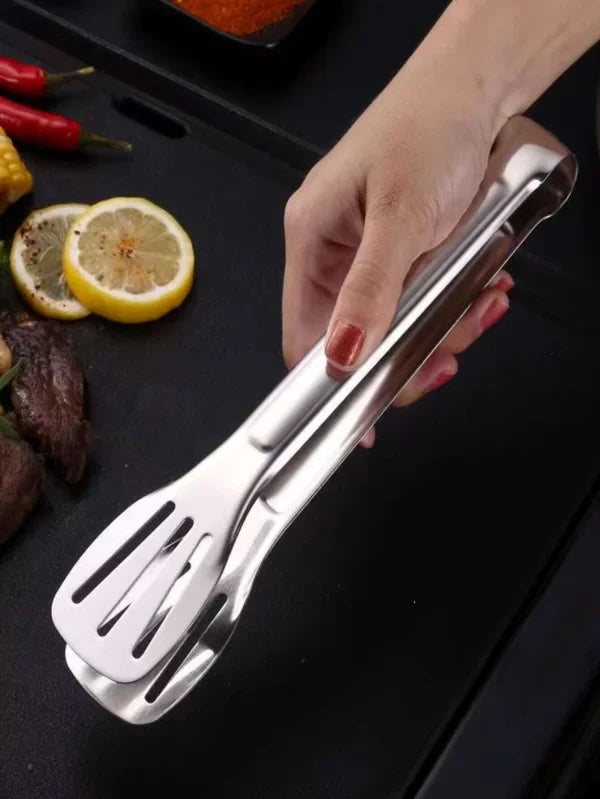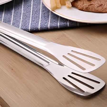 Effortlessly handle your food with our Stainless Steel Food Tongs. Made from durable stainless steel, these kitchen tongs are perfect for cooking, serving salads, and barbecuing. With a secure clip clamp design, you can confidently grip and maneuver food with ease. Elevate your cooking experience with these versatile utensils.