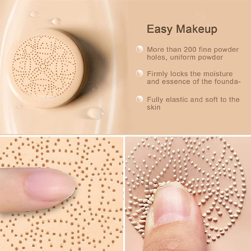 Air cushion BB cream has a bomb small mushroom sponge that evens out the BB cream smoothly on face. This sponge when dipped in water it becomes bigger and softer for a more even coverage.